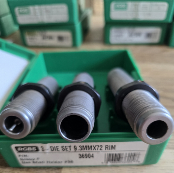 Moin. Ich verkaufe hier Matrizensätze, die jahrelang in meinem Besitz waren, hier einen 3-teiligen (Aufweiter) RCBS Matrizensatz im Kaliber 9,3x72 R, Förster-Patrone.