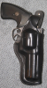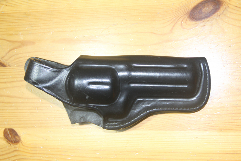 Angeboten wird das hier abgebildete gebrauchte, schwarze Gürtelholster aus Leder für große Revolver. Insbesondere geeignet für Revolver des Fabrikates Smith & Wesson mit großem ('N') Rahmen, wie Modell 27, 29 etc. und Baugleiche. Lauflänge maximal 4 Zoll. Die Revolver passen wie 'hineingeschneidert'.
