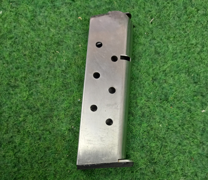 Aus einem Nachlass wird folgender Artikel im Fundzustand angeboten. Ein Magazin 45ACP für 1911er Modelle wie Colt, Springfield, KPS usw. Am Boden wurde ein Gummi angeklebt. Erhaltung siehe Fotos.