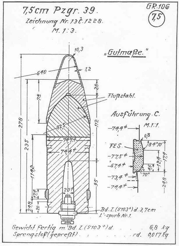 Zur Auktion kommt eine 7,5cm Panzergranate 39 mit Splitter oder Geschßschäden. Die Splitter Geschoßeinschläge sind sehr deutlich einseitig zu erkennen. Durch den entstandenen Kampfschaden konnte die Granate nicht mehr verschossen werden und blieb der Nachwelt erhalten. Die Granate habe ich vor ca. 10 Jahren per Elektrolyse gereinigt und konserviert seitdem hat sich kein neuer Rost gebildet. Das Zündergewinde für den Bodenzünder 5103* ist teilweise beschädigt, ob sich ein passender bodenzünder noch einschrauben lässt kann ich leider nicht garantieren. Die 7,5cm Panzergranate 39 wurde in dem Panzer IV, StuG III, und vor allem in der Pak 40 verwendet.
