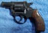 Es geht um den obigen Röhm-Revolver (noch v. Röhm-Sontheim gefertigt) im gebrauchten Zustand. An den Metallteilen ist die Brünierung stellenweise schon ergraut was bei diesem Alter u. der Benutzung als normal anzusehen ist. Bei diesem frühen Modell kann 15mm Signalmunition direkt aus dem Lauf verschossen werden. Der Lauf ist recht frei. Funktionieren tut die Waffe einwandfrei. Der Revolver trägt die frühe PTB Nr. 5-71