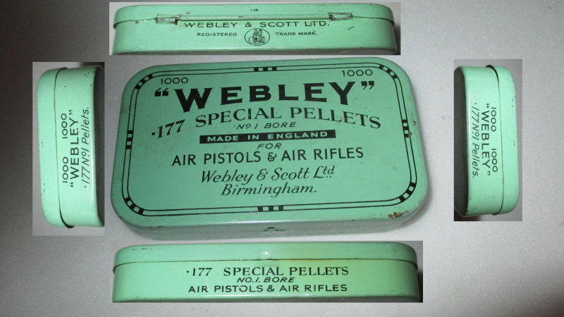 Sie bieten auf eine sehr alte Dose der Firma WEBLEY für Luftgewehrgeschosse, sogen. Pellets im Kaliber .177/4,50 mm aus den 20-30er Jahren in gutem Zustand. Keinerlei Dellen oder Rost, lediglich der Boden der Dose ist an manchen Stellen etwas berieben. Falls Fragen, diese bitte vor dem Bieten stellen und bei Bedarf weitere Fotos anfordern. Es handelt sich um einen Privatverkauf überzähliger Stücke, keinerlei Gewähr / Rücknahme gem. neuem EU-Recht.