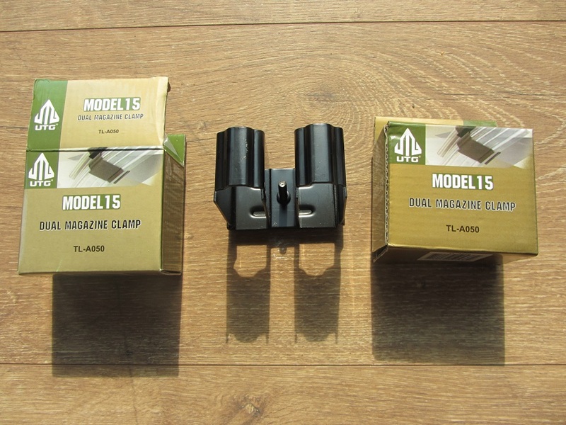 Verkaufe 2 Stück neue, unbenutzte UTG TL-A050 Dual Magazin Clamp Doppel Magazinklammer Magazinverbinder in OVP, geeignet für A15-Magazine, Stahl brüniert