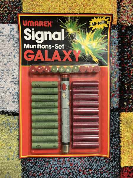 Zum Verkauf steht ein Blister der Firma Umarex mit PM1 15mm Signalmunition für Schreckschuss Waffen.