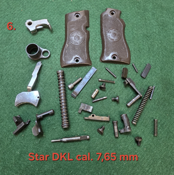 6.) Konvolut Kleinteile Auszieher Griffschalen Hahn Abzug usw. Star DKL 7,65mm Büchsenmacher