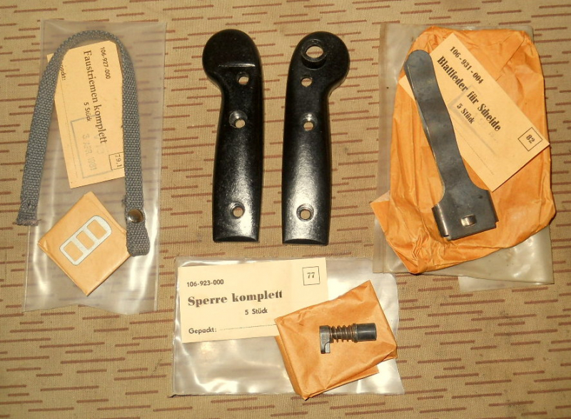 ...Beschreibung: ... Ersatzteil-Konvolut (teilw. mit OVP) für DDR/NVA Bajonett zu AK47/AKM Kalaschnikow … unben. prima-Zustand