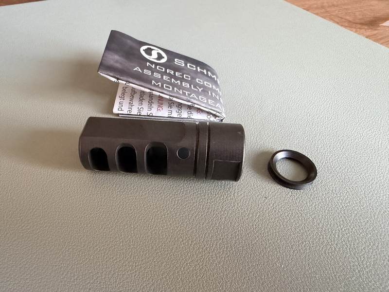 Sie bieten hier auf den original NoRec Kompensator der Fa. Schmeisser für AR15 im Kaliber .223 (nicht 9mm!). Damit lässt sich die Schmeisser AR15 zusammen mit dem Handschutz in die sportlich zugelassene Variante umbauen. Er lässt ich aber auch auf anderen Waffen betreiben um den Rückstoß und Höhenschlag zu reduzieren. Gewinde: 1/2"-28 UNEF.