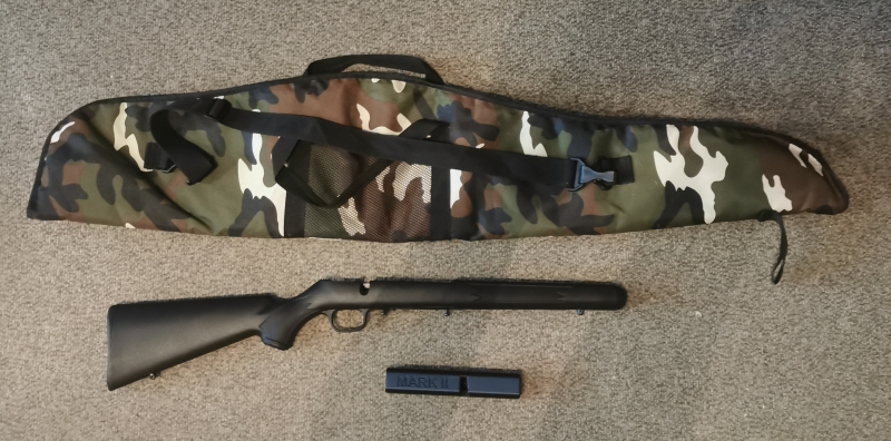 Dabei ist auch noch eine Gewehrtasche und ein Schlossschutz für den Verschluss. Auf einem Bild ist der Schlossschutz mit meinem Verschluss zu sehen, der Verschluss gehört natürlich nicht zur Auktion und bitte auch nicht beirren lassen wenn der Kammerstengel-Griff angesehen wird, hab diesen umgebaut (der originale von Savage Savage ist etwas abgewickelt und hat eine Kugel am Ende. Dieser paßt genau so in den Schlossschutz.