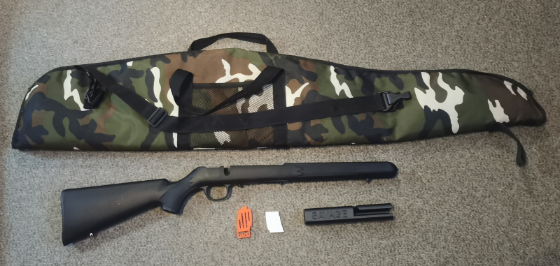 Dabei ist auch noch eine Gewehrtasche, ein Schlossschutz für den Verschluss, sowie ein Einzelschuss-Adapter/Magazin und ein Sicherheitseinschub für den Magazinschacht. Auf einem Bild ist der Schlossschutz mit meinem Verschluss zu sehen, der Verschluss gehört natürlich nicht zur Auktion und bitte auch nicht beirren lassen wenn der Kammerstengel-Griff angesehen wird, hab diesen umgebaut (der originale von Savage Savage ist etwas abgewickelt und hat eine Kugel am Ende. Dieser paßt genau so in den Schlossschutz.