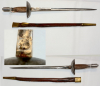 Langer Dolch oder Panzerstecher, zusammengesetzt aus alten und neuen Teilen, Klinge und Scheide dürften original sein, der Griff weitestgehend neu, 3-Kantklinge mit (für mich) nicht lesbarer Angabe, Glocke und Knauf offensichtlich neu, der Griff ?, Klingenlänge 35,5 cm, Gesamtlänge 51cm, die Scheidennaht ist zu 30/40% offen und müsste nachgenäht werden