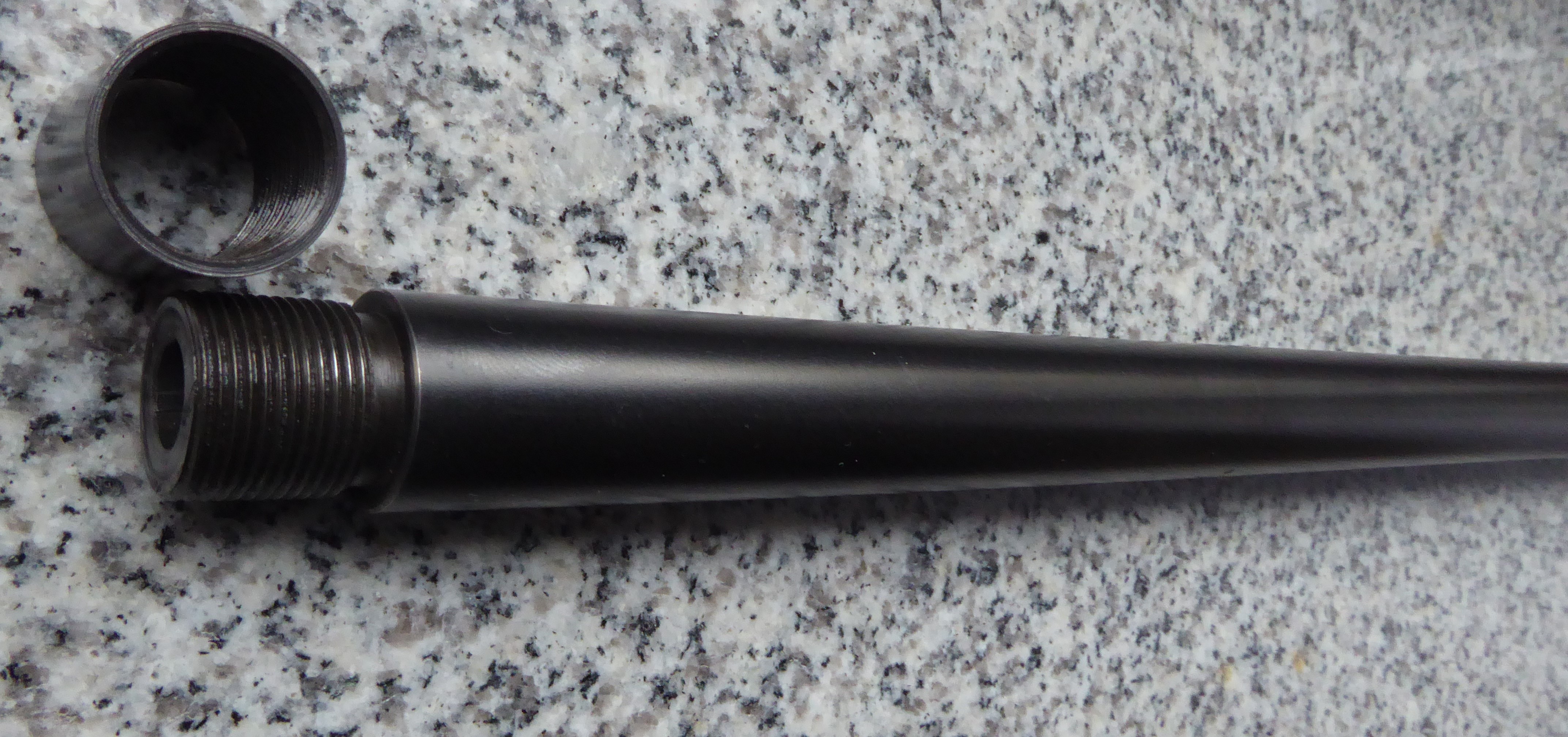 Der Lauf wurde fachmännisch gekürzt; das M15×1-Mündungsgewinde wurde nachträglich vom Büchsenmacher geschnitten. Alle Änderungen sind fachgerecht ausgeführt und mit einem neuen Änderungsstempel am Lauf dokumentiert.