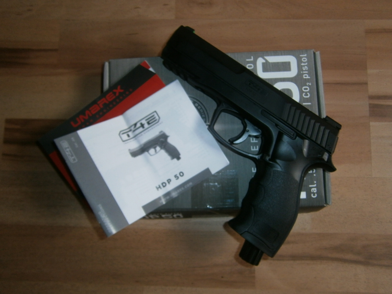 Der Antrieb erfolgt über eine Standard 12 g Co2-Kapsel. Die Magazinkapazität der T4E HDP 50 beträgt 6 Schuss Gummikugeln, Kunststoffkugeln oder Paintballs. Im Selbstverteidigungsfall können auch Pfefferkugeln verschossen werden. Erst nach einem Schlag auf die Griffunterseite wird die Co2-Kapsel angestochen. Zudem verfügt das Modell über eine deutlich sichtbare Druckanzeige.