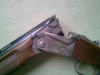 SKB Bockdoppelflinte, Modell 605 Jagd, Kal. 12/70, neuwertig, nur zweimal auf dem Schießstand benutzt, mit Goldabzug, feine Gravuren beidseitig (Ente und Fasan), Lauflänge 71 cm, kein Rost innen und außen, Choke 1/2 und voll, Ejektor vorhanden