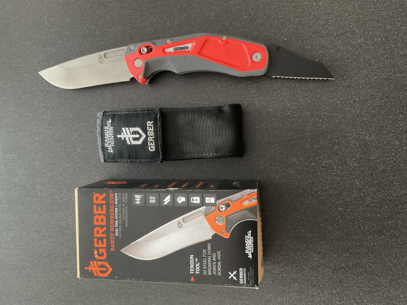 Verkaufe wegen Überbestand neues und unbenutztes Gerber Jagdmesser Randy Newberg DTS. Sehr hochwertiges Taschenmesser mit 2 feststellbaren Klingen. Eine breite Schneideklinge und einer Aufbrechklinge für Sehnen ,Knorpel oder Knochen. Mit stabiler Gürteltasche und Originalverpackung. Da Privatauktion keine Garantie, Rücknahme oder Umtausch