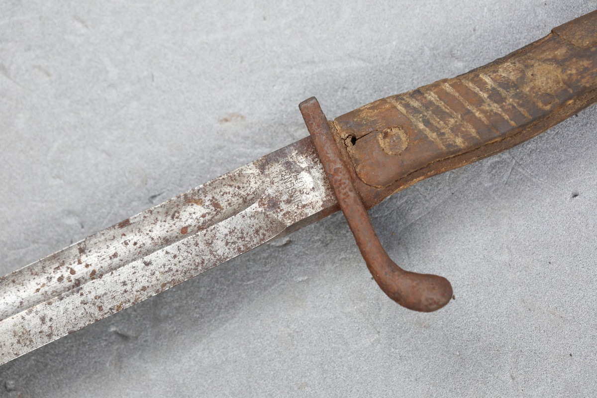 Suchbegriffe: Seitengewehr 98/05 a.A., S98/05 alte Art, Simon & CO Suhl, Preußen, Erster Weltkrieg, WW1 bayonet, W15, Fundzustand, Sammlerobjekt, Militärgeschichte