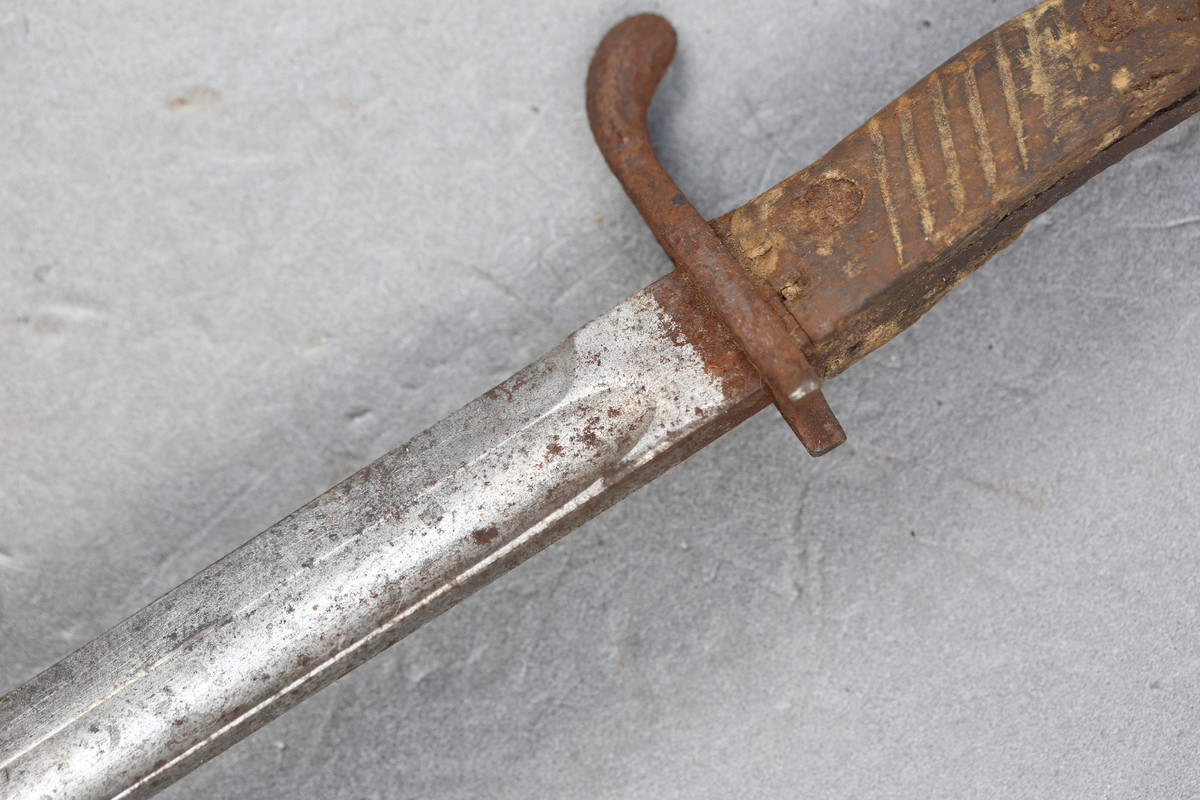 Ich biete hier ein originales Seitengewehr 98/05 a.A. (alte Art) aus dem Ersten Weltkrieg an. Das Stück stammt aus meiner Sammlung und befindet sich im vollständig ungereinigten Fundzustand. Alle Fotos sind Bestandteil der Beschreibung.