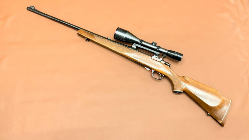 Voll funktionsfähige Repetierbüchse von Parker Hale im Kaliber 7x57. Der Lauf ist innen spiegelblank, die Waffe arbeitet sauber und zuverlässig. Montiert ist ein Kahles Wien Helia-Super 8 Zielfernrohr (Absehen 4) mittels einer Schwenkmontage - klare Durchsicht, voll funktionsfähig. Optisch normaler Gebrauchszustand mit altersgemäßen Gebrauchsspuren am Schaft und am Finish. Zustand Siehe Bilder.