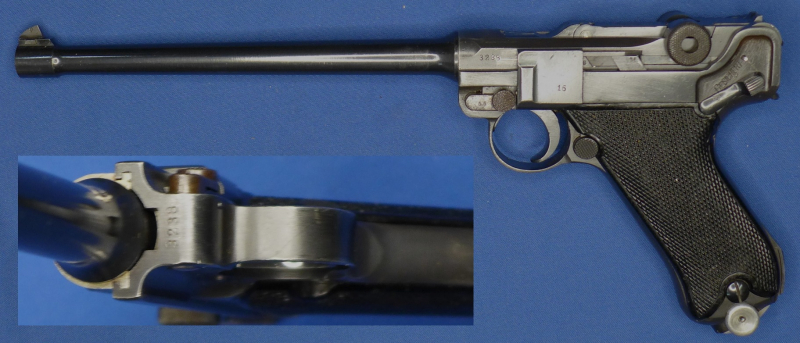Pistole , P08 DWM, Berlin, 1917, 9mm Para. Guter Zustand. Die Pistole ist einmal neu brüniert worden. Der Lauf (20 cm) ist neuwertig und spiegelblank. Die Pistole ist nicht nummerngleich. Aktueller, neuer Beschuss. Ohne Bronzemutter. Keine Rücknahme. Privatverkauf ohne jegliche Sachmängelhaftung.