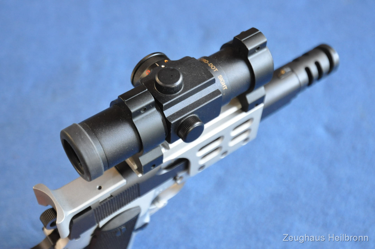 Waffe in einem sehr schönen Zustand, Lauf blank, volle Funktion. Umfangreiche Austattung, siehe Bilder, Rotpunktvisier. Augenscheinlich kaum geschossen, aus Sammlung.