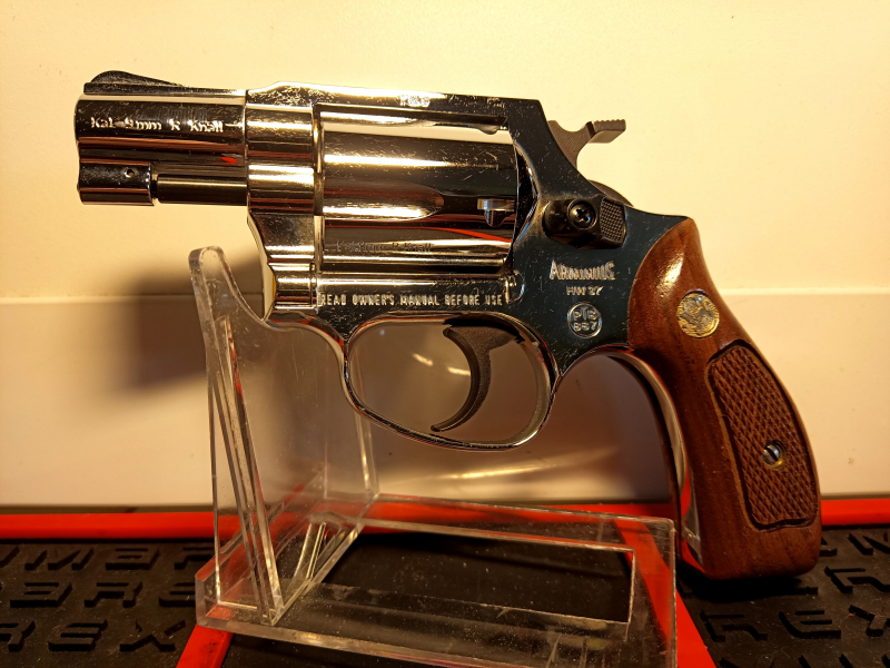 Der halte den Revolver für ungeschossen etwas bespielt. Ich würde das Teil als Neuwertig bezeichnen Crom, Griffe alles sehr schön glänzend und ohne Kratzer. Die S&W Griffe lassen die HW wirklich wie eine "echte" wirken sehr schön in der Vitrine.