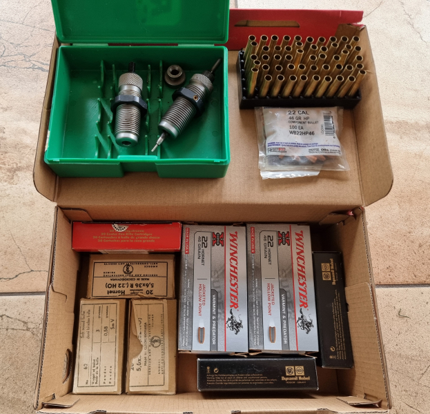 Sie bieten hier auf einen MATRITZENSATZ 22 Hornet + 270 Hülsen + 50 Geschosse.