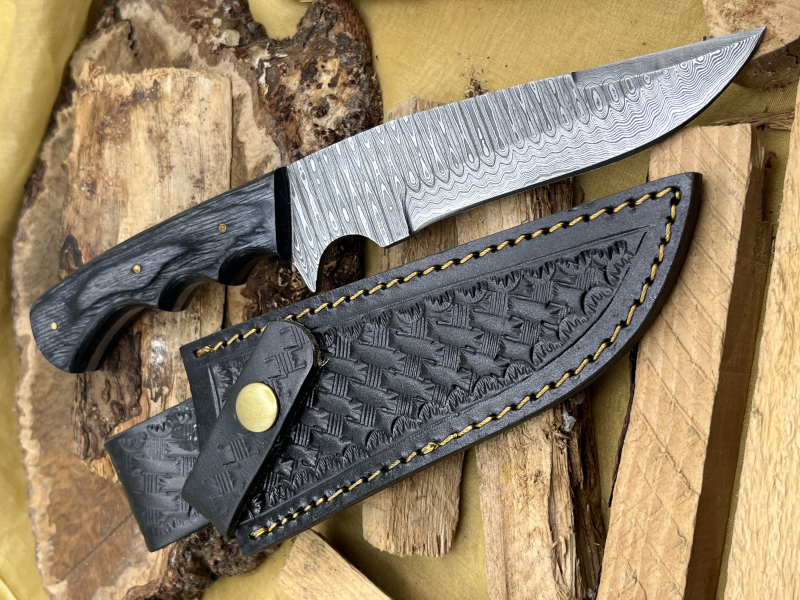 - Typ: Jagd-/Outdoormesser aus echtem, mehrlagigem Damaststahl (über 200 Lagen)