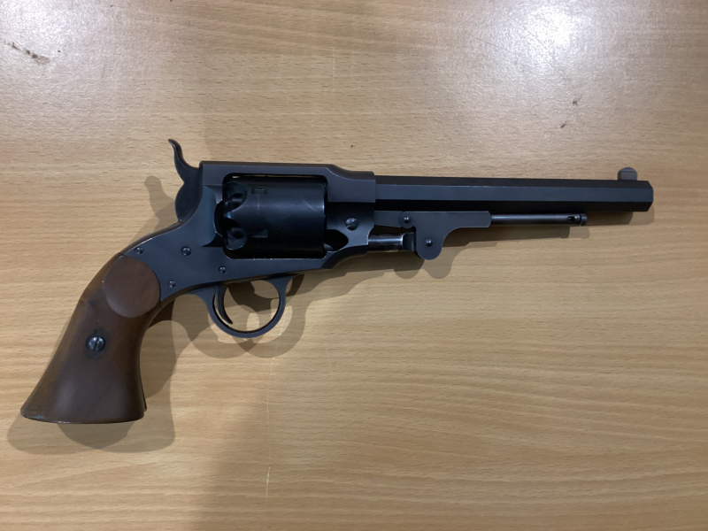 Ich biete hier für einen guten Schützenfreund den abgebildeten Perkussionsrevolver von Feinwerkbau, Modell Rogers & Spencer im Kaliber .44 mit niedriger dreistelliger Herstellungsnummer an. Noch kein Aufdruck "Black Powder only".