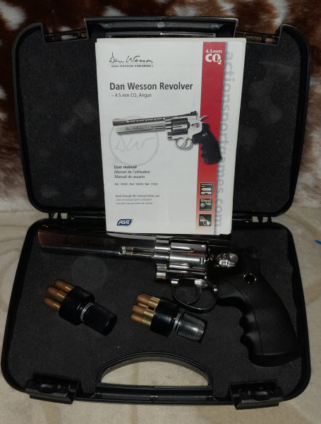Verkaufen meinen DanWesson mit imposantem 6 Zoll Lauf. Voll funktionsfähig mit zweitem Speedloader und zusätlichen sechs Hülsen für 4,5mm BBs. Wenig gebraucht, nicht neu. Pfleglich behandelt. Funktion einwandfrei.