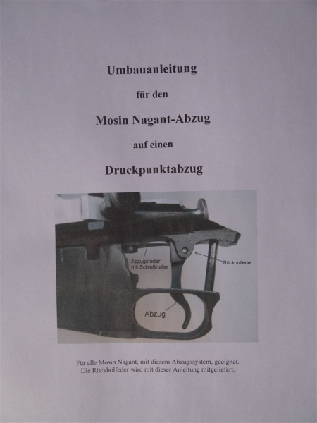 Auktionsgegenstand ist eine Umbauanleitung, eine Rückholfeder und zwei Passstifte für den Abzug.