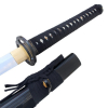 Gefaltetes Samurai Schwert Katana MUSASHI BO-HI . Das Schwert ist aus handgefaltetem Kohlenstoffstahl nach traditioneller Art geschmiedet. Der Damststahl wurde 12 mal gefaltet. Die Klinge wurde nach dem Polieren und Schleifen nochmals speziell behandelt. Die Tsuka ist aus Holz, mit echter Rochenhaut unterlegt und schwarze Baumwolle umwickelt. Am Griff sind zwei Mekugis (Bambusdübel) angebracht .Dieses Katana ist vollständig zerlegbar und scharf geschliffen. Gesamtlänge mit Scheide : 103cm Klingenlänge : 73cm Gesamtgewicht mit Saya 1160gr ohne Saya 960gr :Im Lieferumfang ist ein Schwertbeutel und ein Pflegeset . Erhältlich ab 18Jahren.