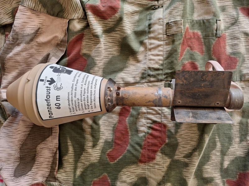 Moin Moin, verkaufe hier einen originalen Flügelschaft der Panzerfaust 60 aus dem 2Wk. Dazu noch eine Replik eines Geschosskopfes, beide passen perfekt zsm. Natürlich Vollständig Inert und ungefährlich. Zustand des Kopfes ist neu, Zustand des Flügelschaftes: leichter bereits gereinigter Rost an der Oberfläche der Kopfhaltung, keinerlei Durchrostung. Das Holz des Schaftes sowie die Flügel und Nieten sind auch noch im sehr guten Zustand. Farbe auf dem Flügelschaft ist original. Versand erfolgt nur Versichert und natürlich sorgfältig verpackt. Bezahlung per Paypal an "Freunde/Familie" möglich. Versand außerhalb Deutschlands innerhalb der EU bitte erfragen. Da Privatverkauf keine Garantie oder Gewährleistung.