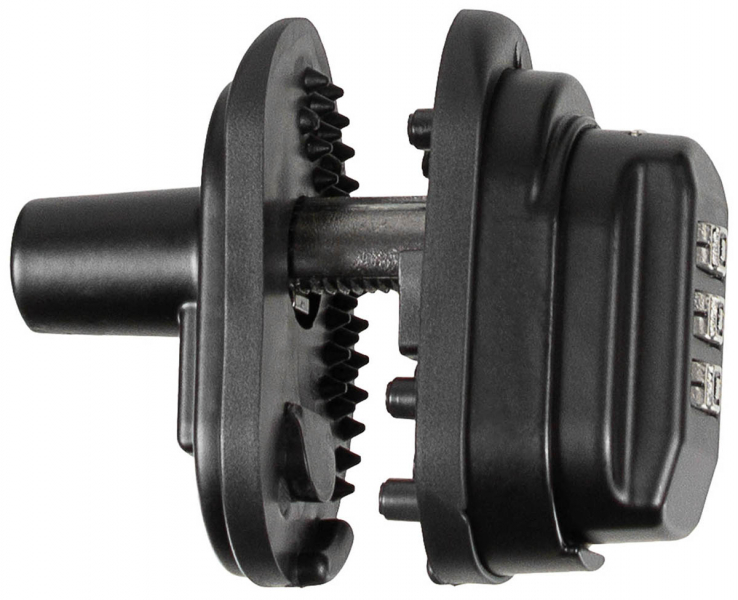 2. Die beiden Teile des Schlosses auseinander nehmen. Drehen Sie hierzu den "Code-Bereich" um 90 Grad ein. Das Schloss öffnet sich.