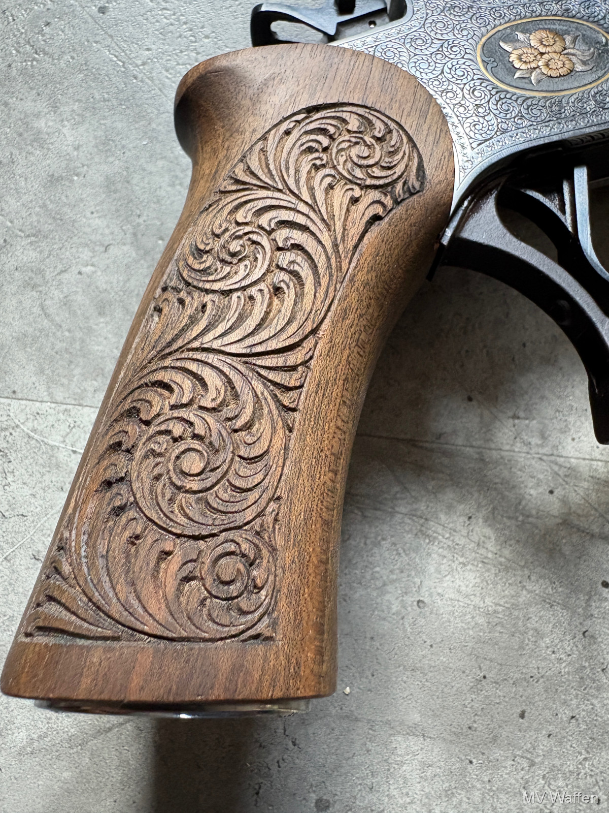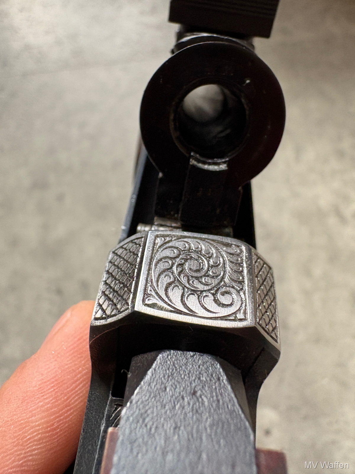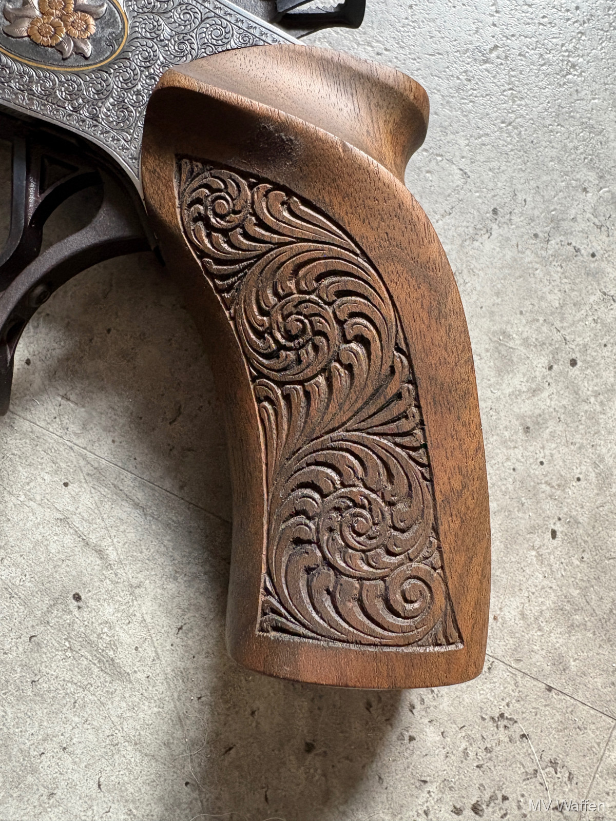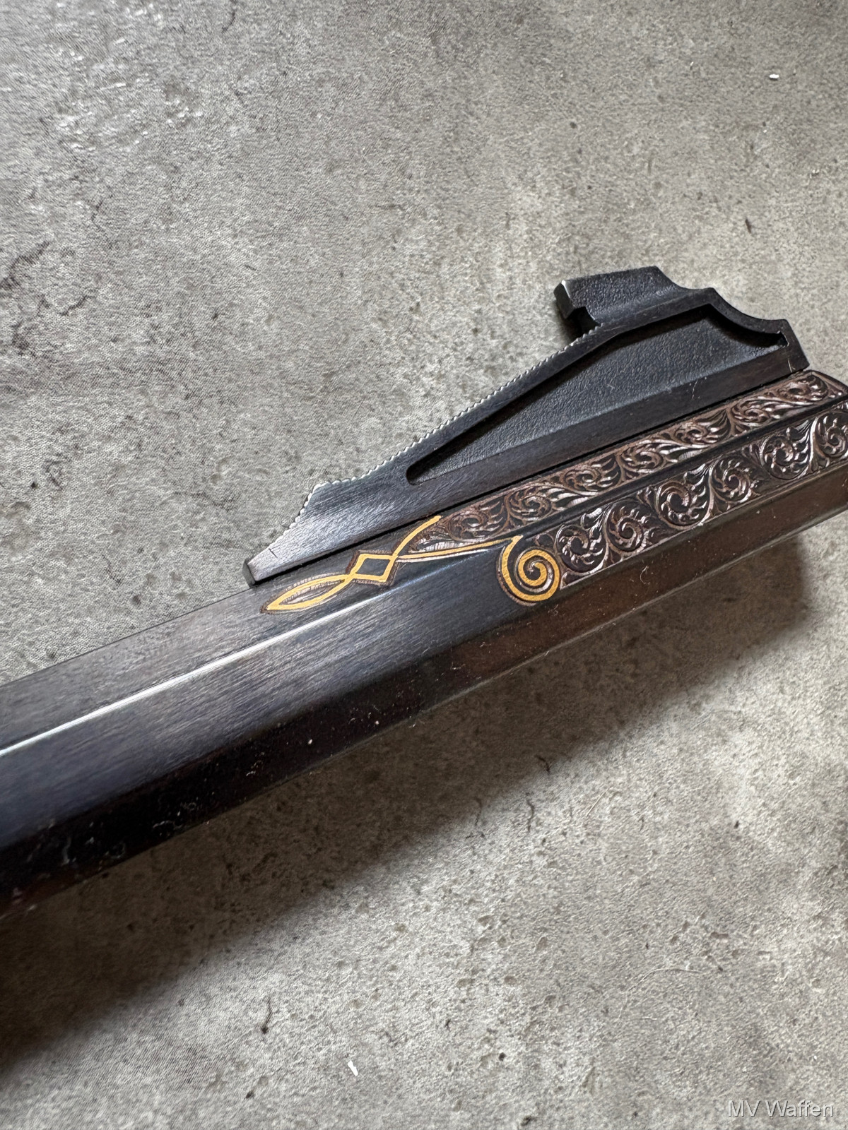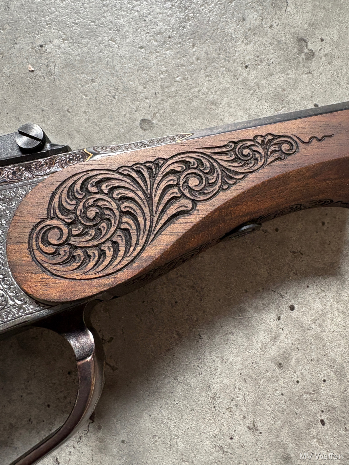 Wunderschön reich gravierte Thompson Contender im Kaliber .38 SP. Ein wirkliches Kunstwerk. Hat keinen Beschuss, ist zum Schiessen allerdings auch viel zu schade. Eine wirklich Traumhafte Waffe. Züge und Felder scharf. Komplette Funktion gegeben. Sehr guter Zustand. Direktversand an Europäische Händler möglich. Fragen Sie bitte nach den Versandkosten. Wie immer völlig unbearbeitet um Ihnen einen ehrlichen Eindruck des Zustandes zu ermöglichen.. Diese Sammelwaffe kann natürlich gerne, nach vorheriger Absprache in Wolfratshausen besichtigt werden