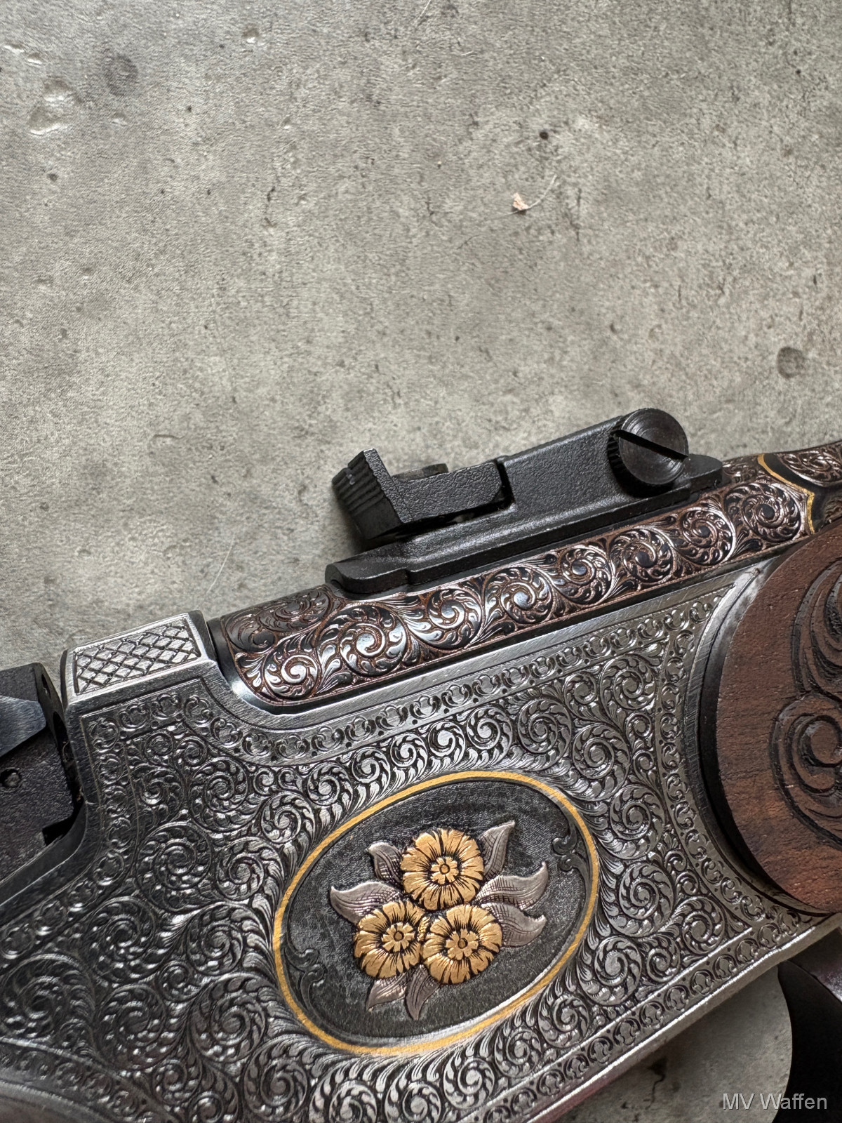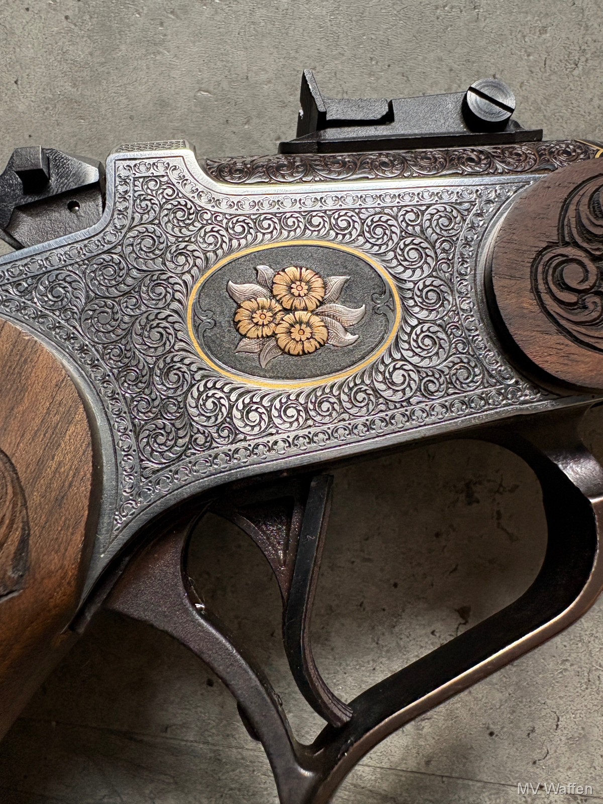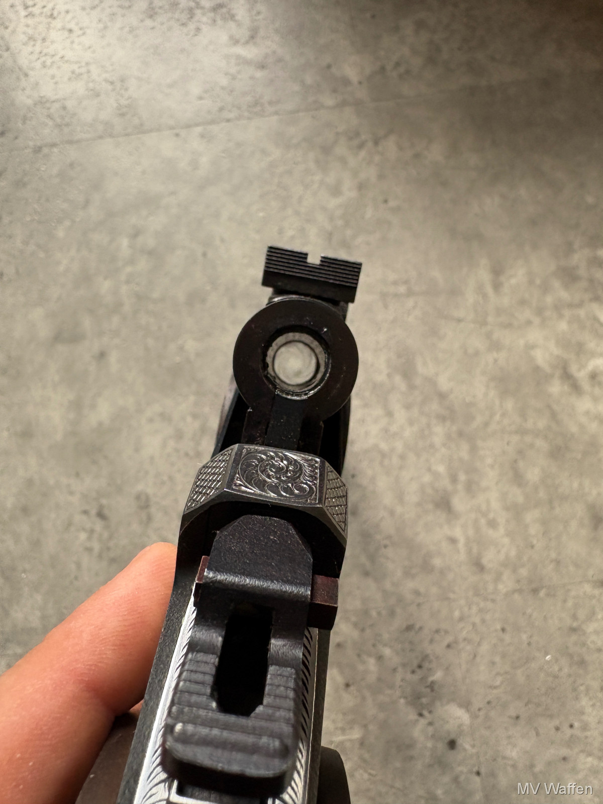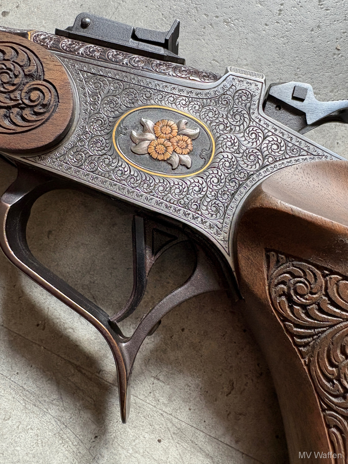 Wunderschön reich gravierte Thompson Contender im Kaliber .38 SP. Ein wirkliches Kunstwerk. Hat keinen Beschuss, ist zum Schiessen allerdings auch viel zu schade. Eine wirklich Traumhafte Waffe. Züge und Felder scharf. Komplette Funktion gegeben. Sehr guter Zustand. Direktversand an Europäische Händler möglich. Fragen Sie bitte nach den Versandkosten. Wie immer völlig unbearbeitet um Ihnen einen ehrlichen Eindruck des Zustandes zu ermöglichen.. Diese Sammelwaffe kann natürlich gerne, nach vorheriger Absprache in Wolfratshausen besichtigt werden