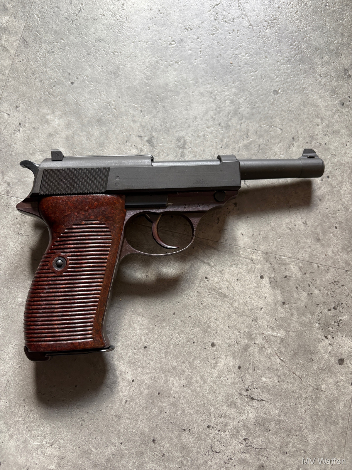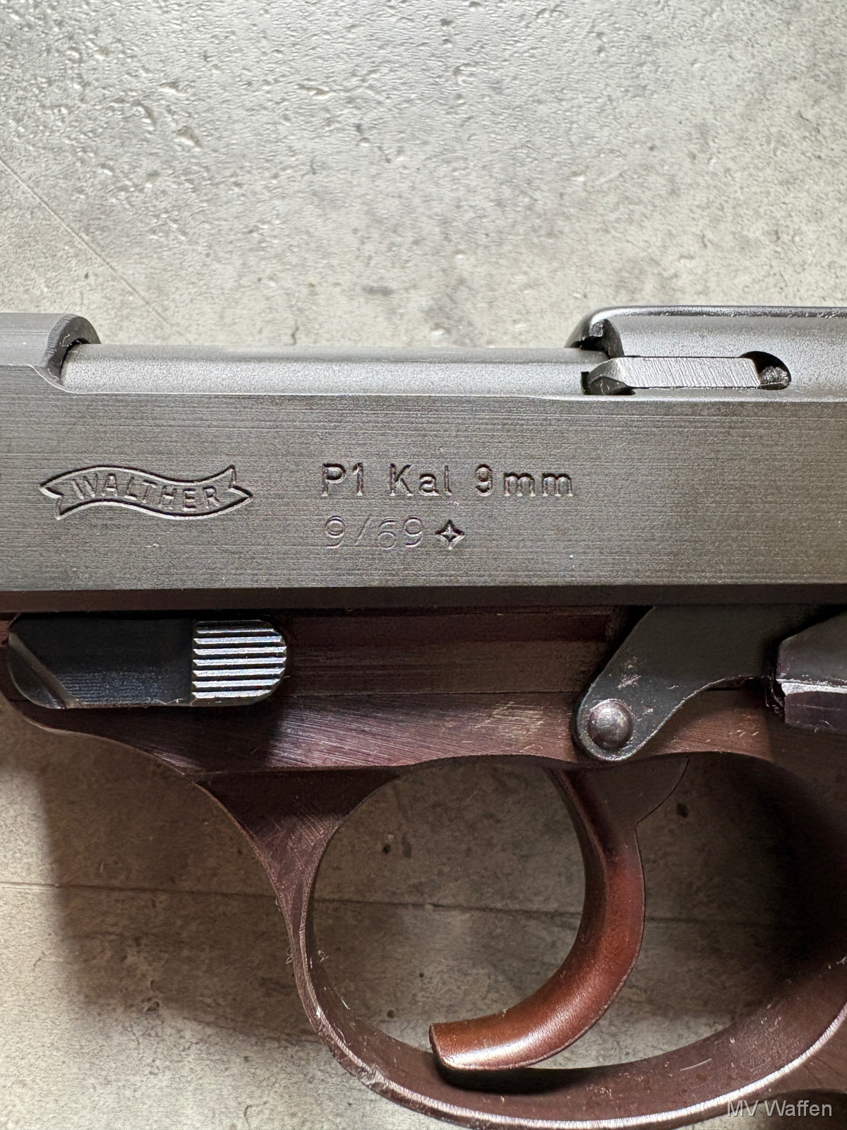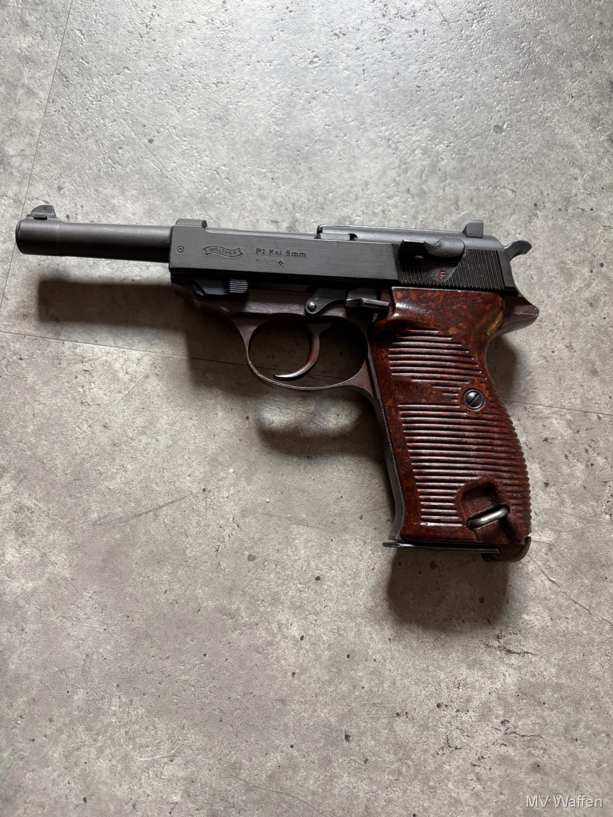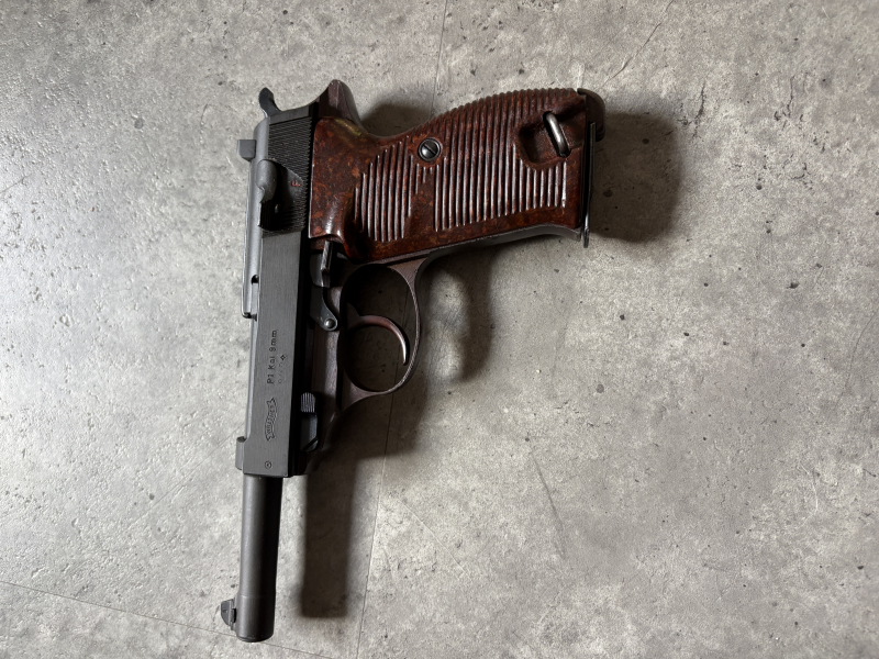 Walther P1 im Kaliber 9mmLuger. Schöne originale Behörden Waffe. Sehr guter Zustand. BMI Beschuss. Schussbild war gut und präzise. Zuschlagen bei der Gelegenheit. Direktversand an Europäische Händler möglich. Fragen Sie bitte nach den Versandkosten. Wie immer völlig unbearbeitet um Ihnen einen ehrlichen Eindruck des Zustandes zu ermöglichen.. Diese Sammelwaffe kann natürlich gerne, nach vorheriger Absprache in Wolfratshausen besichtigt werden