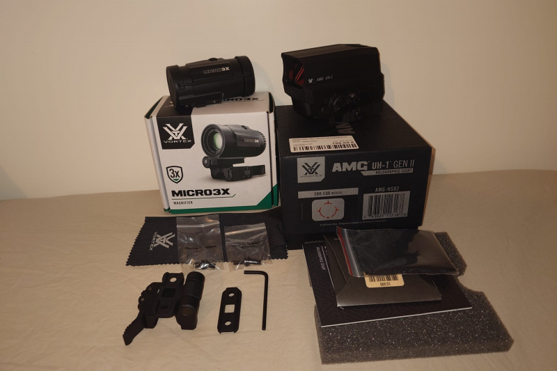 ich biete privat mein Vortex AMG UH-1 Gen 2 Rotpunkt Visier mit dazugehörigem Vortex 3x Micro Magnifier und Vortex Schutzhülle (Sight Cover für das UH-1) an.