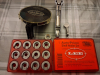 Zum Verkauf kommt hier ein Hülsenhalterset der Firma Lee. Die Hülsenhalter sind neuwertig. Mit dabei sind noch einige Teile des dazugehörigen Zündhütchensetzers. Er hat einen SP Setzstempel. Es fehlt aber der dazugehörige "Hebelarm".