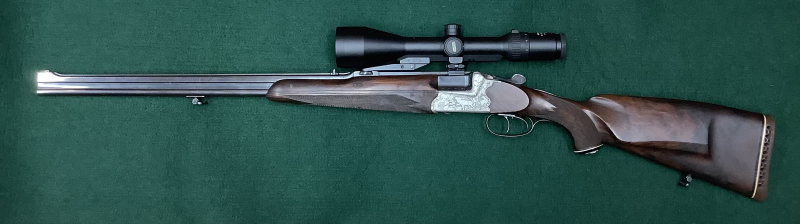 GEBRAUCHT   Bockdoppelbüchse Franz Sodia Ferlach Kal.: 9,3x74R | 5,6x50R   Lauflänge: ca. 60 cm Schaftlänge: ca. 38,5 cm Gesamtlänge: ca. 109,5 cm   mit Visierung mit Zielfernrohr  Meopta Meostar R1r  2-12x56 RD/MR
