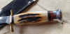 Verkaufe ein Linder- Solingen- Germany - Farmermesser. In Bowie- Form, letzte Auflage!! Handgeschmiedet!! Für Sammler und Jäger. Hübsches schlankes Messer, Klinge Carbonstahl, deswegen leichte Anlaufspuren Geringe Gebrauchsspuren an der Scheide, eher vom Lagern in der Kiste. Das Messer wurde kaum genutzt, Klinge minimalste Gebrauchsspuren, keine Grate oder falsch geschliffen. Sehr schöne Hirschhornschalen, Knebel verschraubt, mit leichten Kratzern. Leder - und Ziereinlagen. Parierstange Messing.