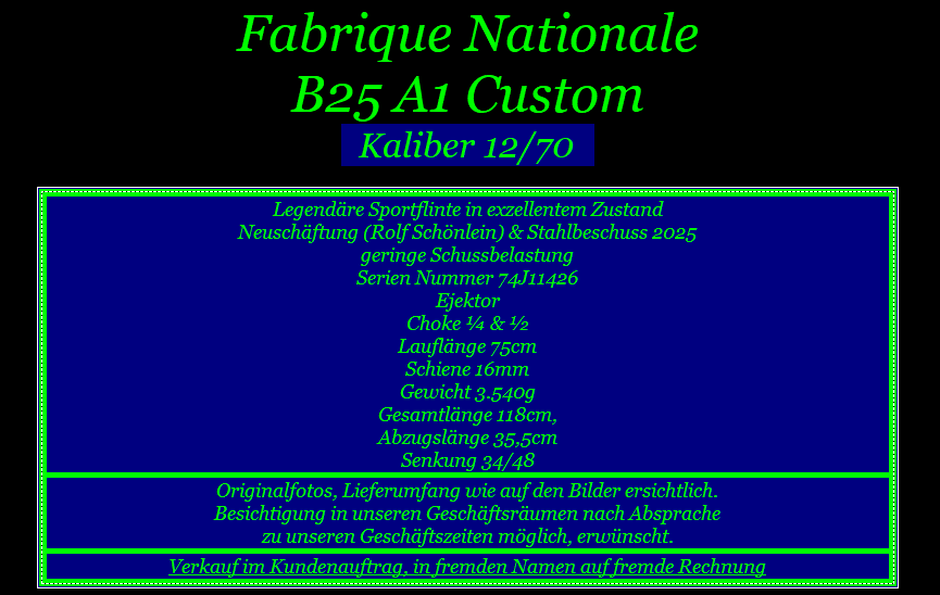 Fabrique Nationale B25 Custom Kaliber 12/70 mit Stahlbeschuss