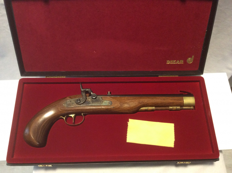 Zum Verkauf kommt hier diese Voderlader Pistole Kaliber 45 DIKAR Spanien. Leider fehlt das Korn. In orginal Kiste. Siehe Fotos. Da privat Verkauf keine Garantie und Rücknahme des Artikels. Versand außerhalb Deutschlands nur auf Anfrage.