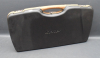 Die Kanten des Koffers sind abgerundet und mit Leder eingefasst, innen ist er mit edlem Samt ausgeschlagen.