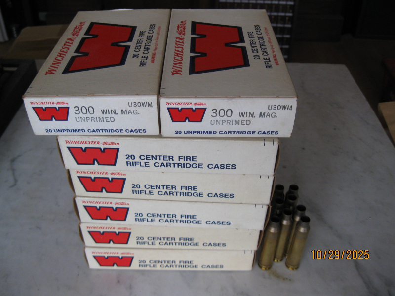 148x Winchester .300 Win Mag Hülsen in Originaler Verpackung. 49 Hülsen wurden 1x Wiedergeladen, 99 Hülsen sind ungeladen! Gebrauchtware, keine Garantie, kein Umtausch.