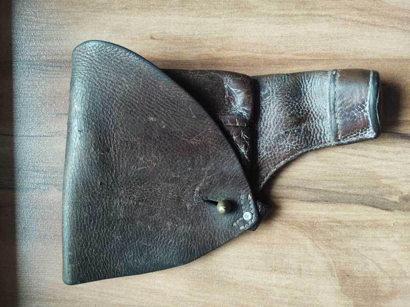 Schwedisches Holster für die Pistole M 1907, butterweiches Leder ohne Beschädigungen, Stempel drei Kronen und etwas Unleserliches.