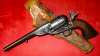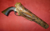 Verkaufe wegen Sammlungsverkleinerung: einen UBERTI OPEN TOP 1872 in der gesuchten Version mit gravierter Trommel und Army Griff - PTB 920 - 9 mm Knall - die Waffe wurde ein paarmal geschossen und im Westernhobby getragen - sie ist gebraucht mit ein paar Trage-/Spielspuren (Siehe Fotos!), die Mechanik funktioniert tadellos und die Waffe hat einen super Schloßgang, der Griff wurde abgezogen und geölt - dazu gibt es ein außergewöhnliches Old Style Holster im Slim Jim Style, dunkelbraunes Leder, es wurden Muster mit der Hand ins Leder geschnitten, das Alter und der Hersteller sind mir nicht bekannt, das Holster ist gebraucht mit stärkeren Trage-/Gebrauchsspuren (Siehe Fotos!), das Holster hat eine sehr schöne Patina