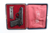 Geliefert in einer sehr schön erhaltenen Originalschatulle, mit WALTHER-Banner auf dem samtrotem Innendeckel. Die Schachtel ist schön, mit harmlosen Lagerspuren. Mit Zweitmagazin, ansonsten ohne weiteres Zubehör.