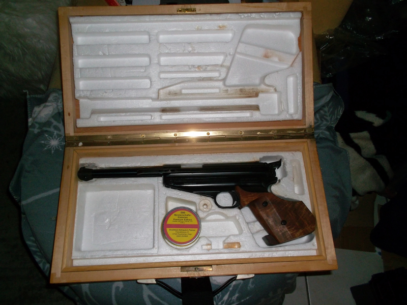LP65 von Feinwerkbau mit Holzkoffer und Orginalem FWB-Inlay zu dieser Waffe.Auf 10mtr. eingeschossen mit der Mitgelieferten Munition.Dichtungen wurden vor etwa 6Jahren gewechselt mit Feder und Kolbenring vom Büchsenmacher.Dach höchstens 3Dosen Kugeln verschossen.Hat noch den vollen Druck und Dichtigkeit.Privatverkauf ohne Garntie und Rücknahme sowie Gewährleistung.Versicherter DHL-Versand mit Alterssichtprüfung.Verkauf ab 18Jahren mit Altersnachweis.