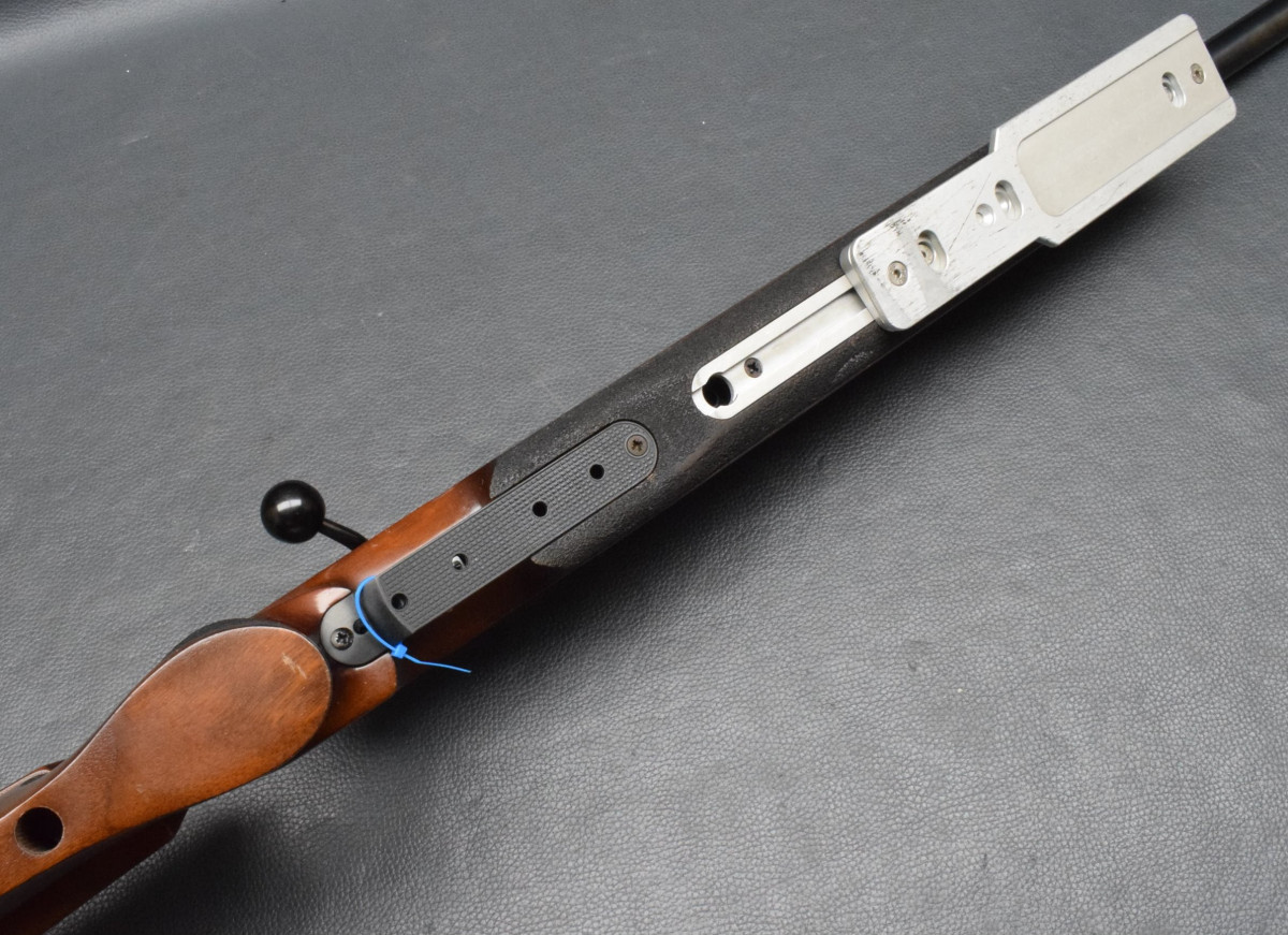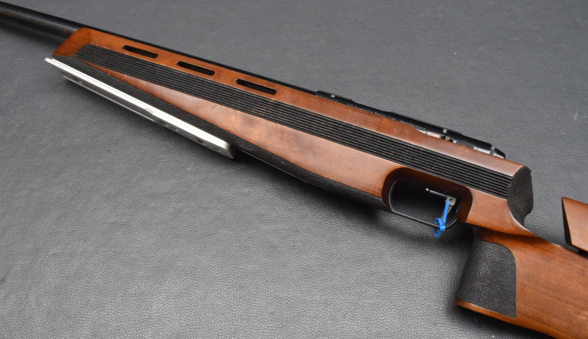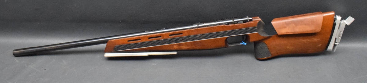 seitliche Sicherung, einstellbarer Matchabzug. Nußbaumschaft mit einstellbarer Backe, UIT Schiene,