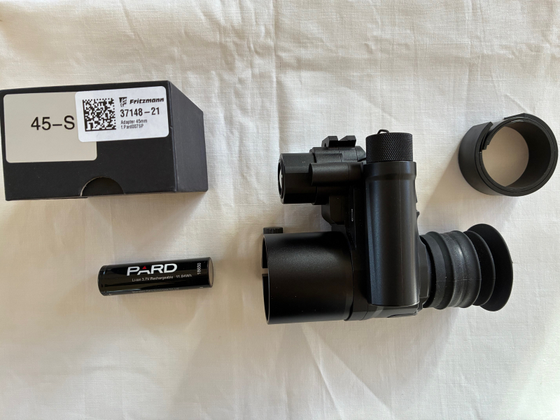 Zum Verkauf kommt ein gebrauchtes voll funktionsfähiges Nachtsichtgerät PARD 007SP mit IR-Strahler 850nm. mit Adapter 45mm und Reduzierringe.