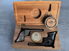 Remington Rider Paar im Set Kaliber 4,3mm in wunderschöner Holzbox inkl. Zündhütchen und Rundkugeln im Kaliber 4,3 mm. Tadelloser Sammler Zustand ohne Gebrauchspuren. So im Set und Zustand sehr selten zu bekommen. Da aus Privatverkauf ohne Rücknahme oder Garantie.